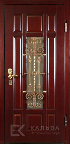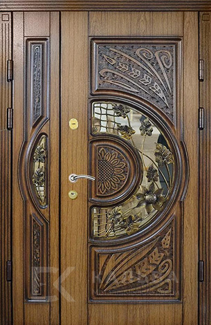 Фото «Входная дверь светлый дуб с аркой и панелью махагон №28»