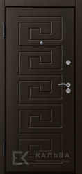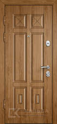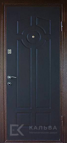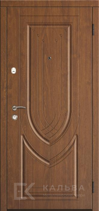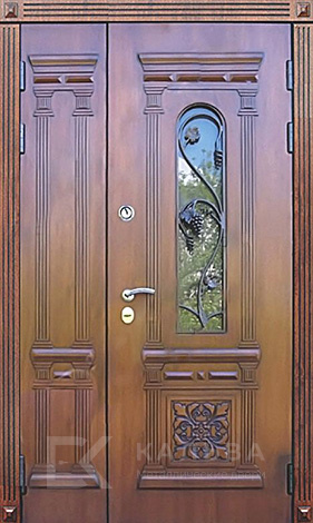 Фото №2 «Классическая железная дверь орех с фигурной фрезеровкой и вставкой №31»