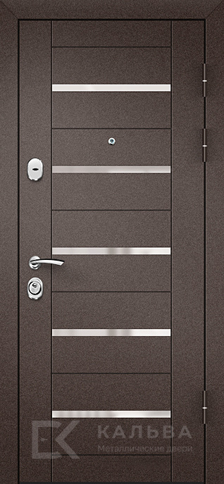 Фото №2 «Стальная дверь тёмная с хром полосами и зеркалом венге №45»