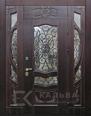 Фото «Стальная белая дверь с золотой патиной в классике №408»