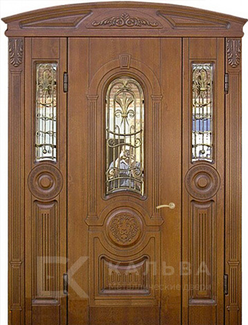 Фото «Металлическая арочная дверь тёмная с классической филёнкой №98»